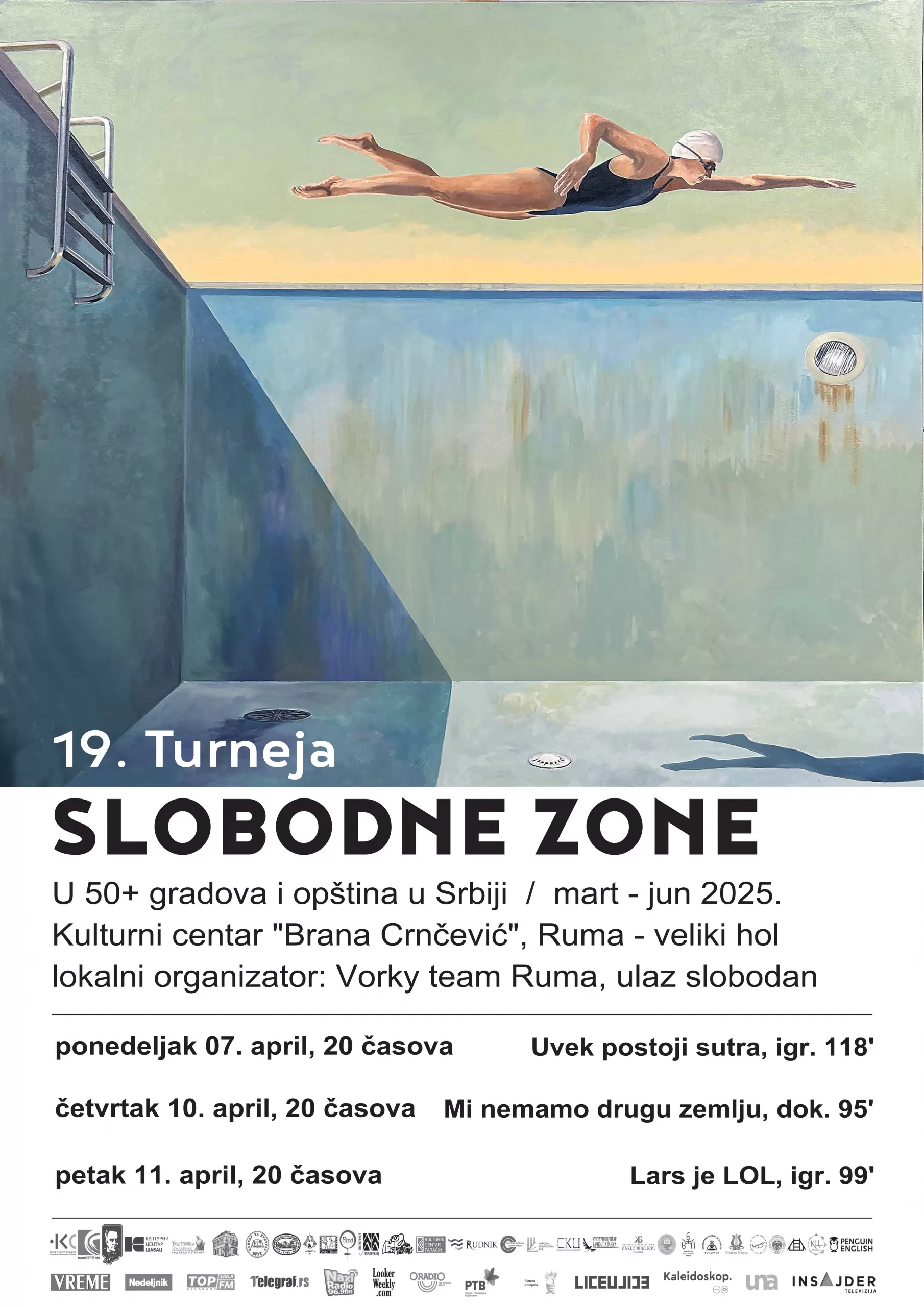 19. Turneja Slobodne zone u okviru ovogodišnjeg izbora filmova donosi najnovije dokumentarne i igrane filmove (3 u aprilu i 3 u maju) koji su bili izuzetno zapaženi na globalnoj angažovanoj filmskoj sceni.